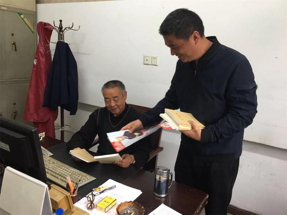2019年10月12日,中阳集团党支部开展给老党员干部送学习书本活动。