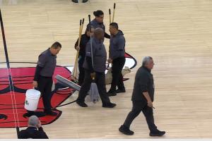历史级罕见延迟!因球场地板冒水 9点开打比赛11点还在擦地板
