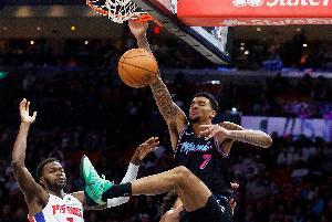 本场比赛,热火中锋韦尔攻防两端表现出色,打了34分钟15投11中,三分7中5、罚球2中1砍下28分19篮板1抢断,正负值-6。