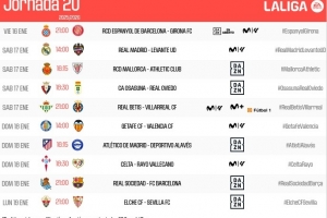 西甲第20轮时间:1月17日21点皇马vs莱万特,19日4点皇社vs巴萨