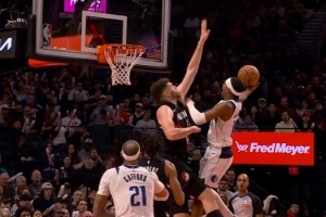 GIF-布兰登·威廉姆斯突破对抗克林根潇洒上篮