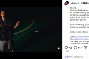 路易斯·迪亚斯发布个人首支单曲,讲述从贫困家乡到顶级球星之路