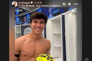 因伤缺阵的姆巴佩也在赛后通过社媒送上祝贺,姆巴佩转发了贡萨洛·加西亚在赛后手持队友签名的纪念足球的照片,并配文:“BOOM!恭喜你,继续加油!射手!”