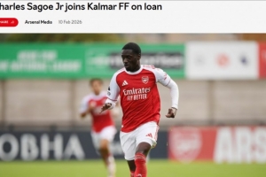 体育资讯2月11日讯 阿森纳官方宣布,外租21岁小将查尔斯·萨戈到瑞典球队卡尔马,租期至2027年1月。